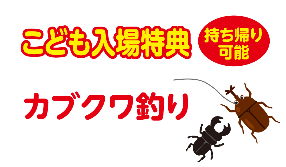 カブクワ釣り・めだかすくい体験は、人数に限りがあるため、定員を超えた場合は受付を終了させていただきます。あらかじめご了承ください
