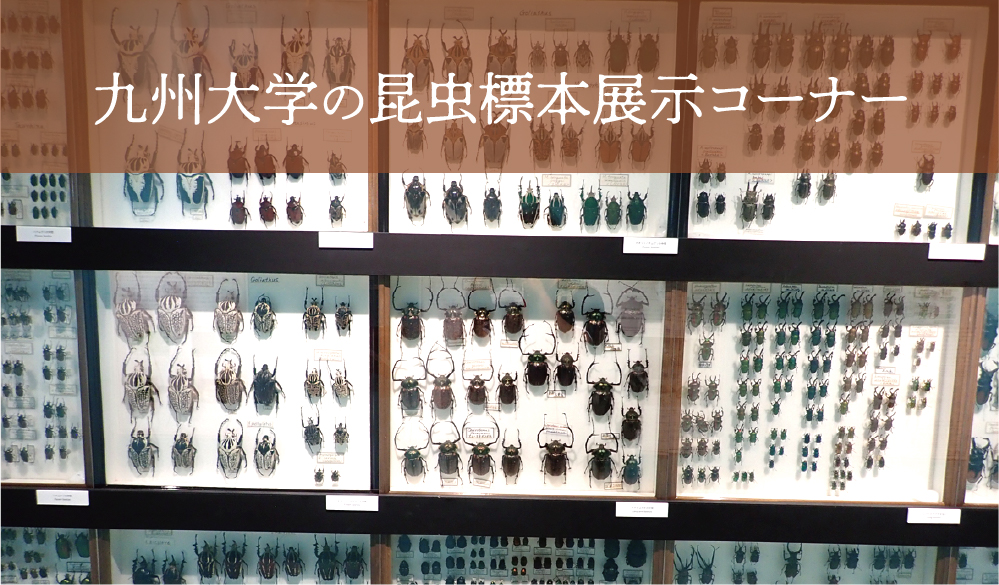 九州大学総合研究博物館に収蔵されている国内最大の昆虫標本の中から、世界の大型カブトムシ、クワガタムシ、タマムシ、カミキリムシなどの甲虫をはじめ、独特な色形をした昆虫を厳選しました。