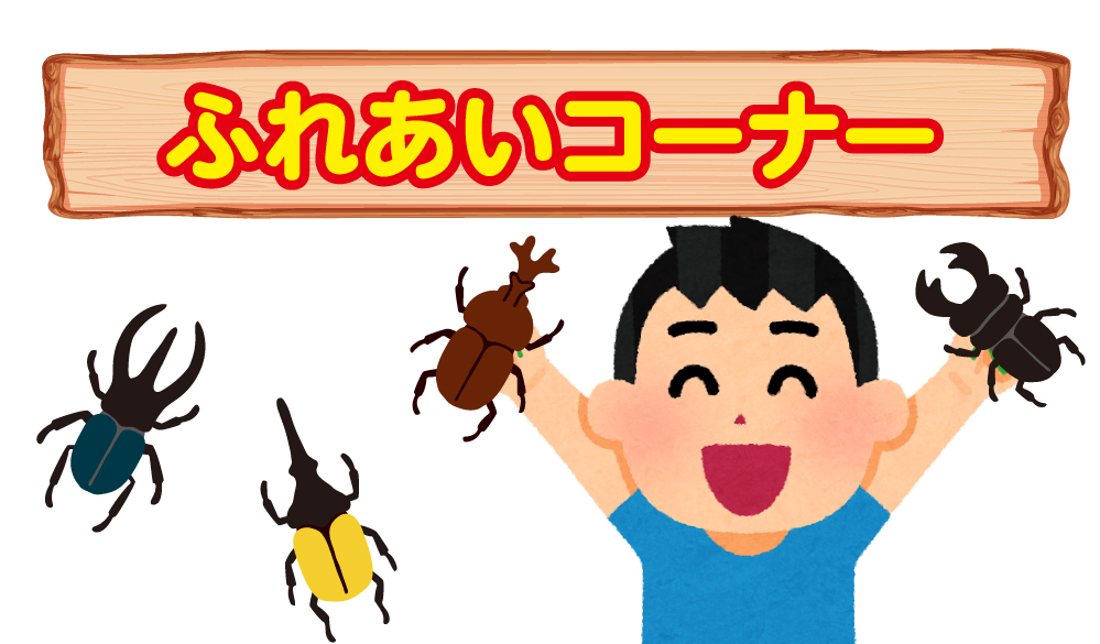 ※展示中のすべてのカブトムシ・クワガタに触れることができます(ただし、昆虫の状態により触れない場合があります)